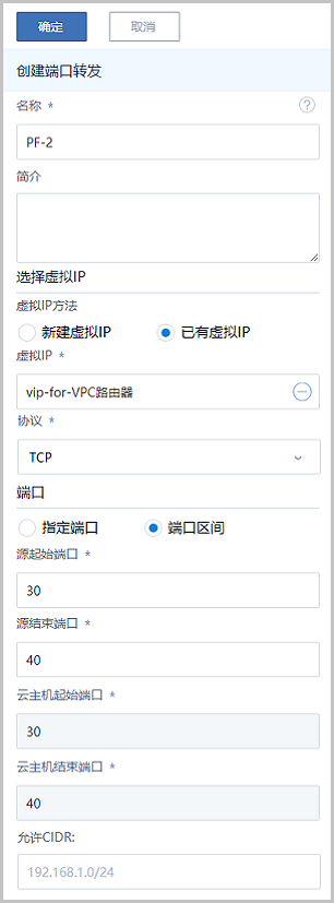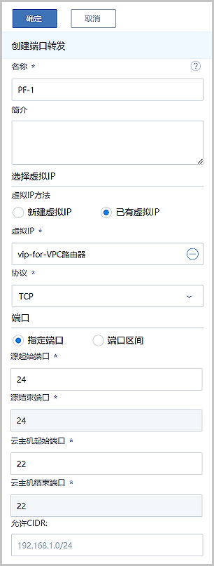 - 端口转发服务限于云路由器/VPC路由器提供。