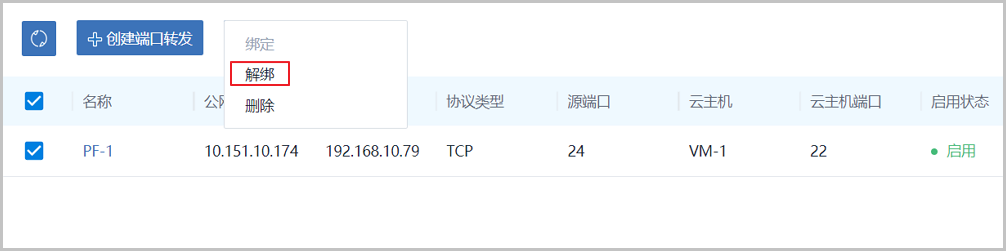 - 弹性端口转发规则可动态绑定到云主机,或从云主机解绑。