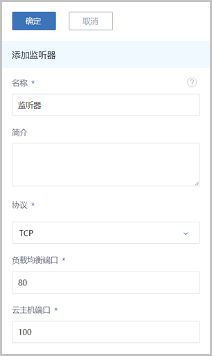 - 创建并添加监听器,指定公网端口到云主机端口的对应关系,设置规则及算法等。
