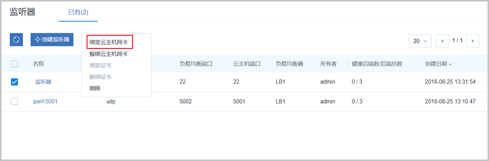 - 选择指定三层网络的云主机网卡绑定到监听器,使负载均衡器生效。