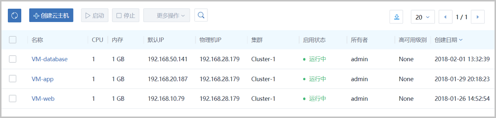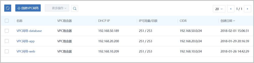 Table 4. 应用网络配置信息 私有网络 配置信息 网卡 em01 VLAN ID 2020 IP CIDR 192.168.20.0/24 - 数据库网络(VPC网络-3)