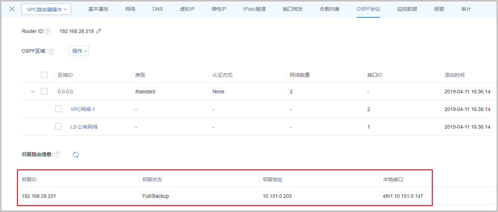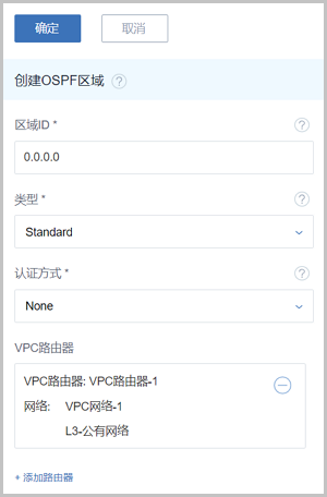 - 创建OSPF区域并将VPC路由器加入OSPF区域;