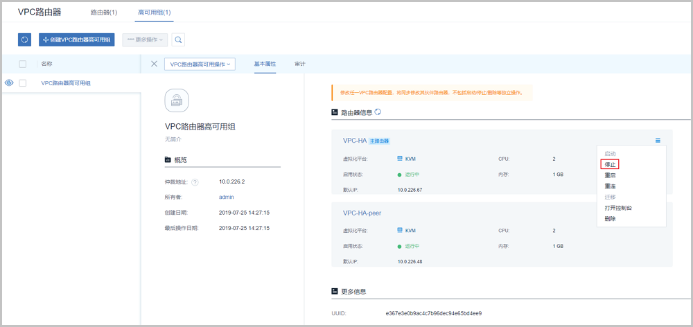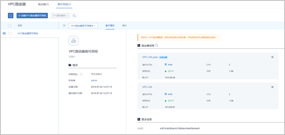 - 创建VPC路由器高可用组
