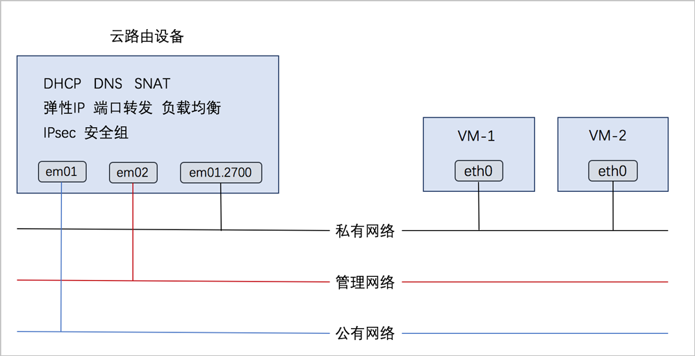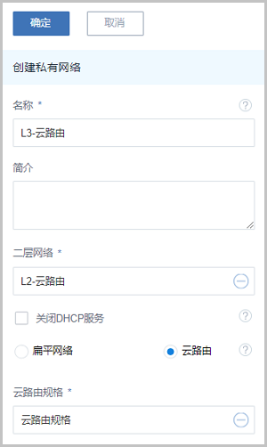 - 使用此私有网络创建云主机,创建云主机过程中会自动创建云路由器,云路由器会提供云路由网络的各种网络服务。
