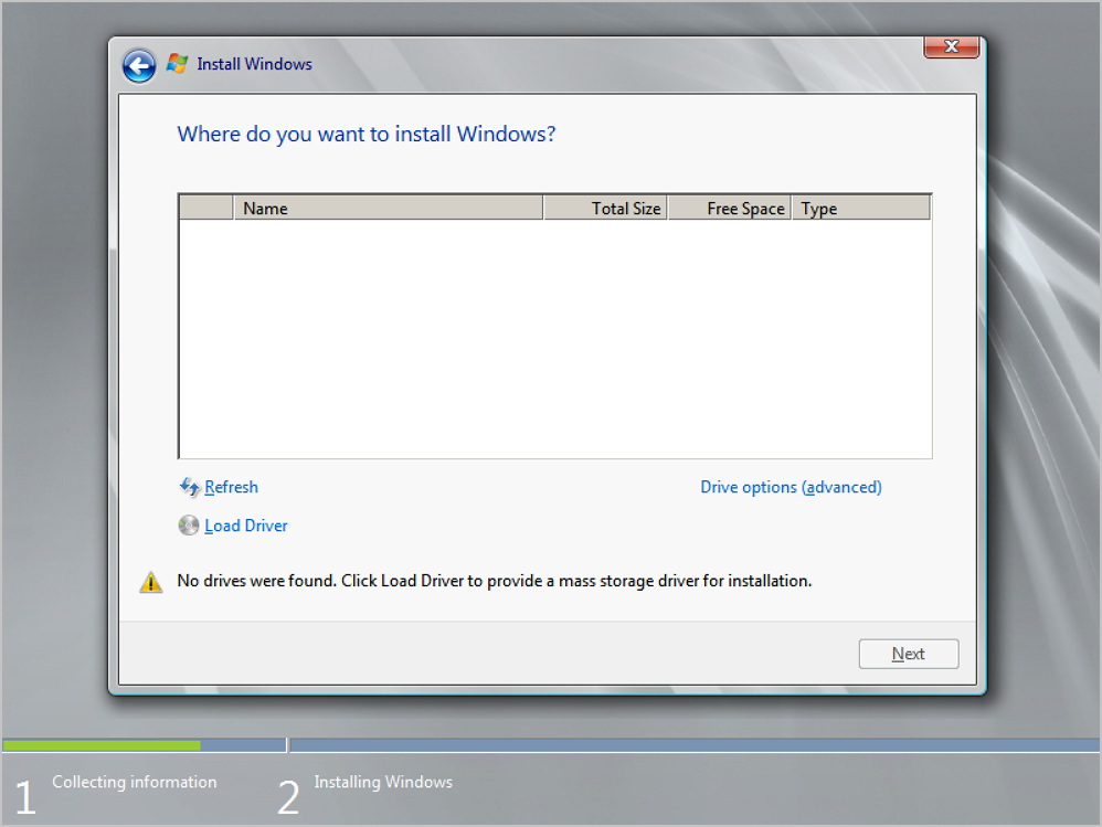 After you load the disk drive, select a system installation path and click Next to continue the preceding installation process. During installation, the operating system will automatically reboot, which may lead to disconnection of the console. In that case, re-enter the operating system. After you complete installing the operating system, customize the admin password and log in to the operating system. So far, the Windows operating system is installed.
