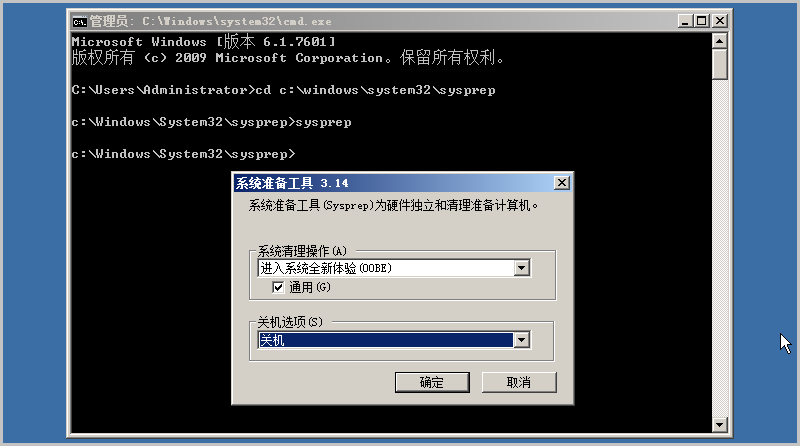 - 进入C:\Windows\System32\sysprep目录运行Sysprep工具;