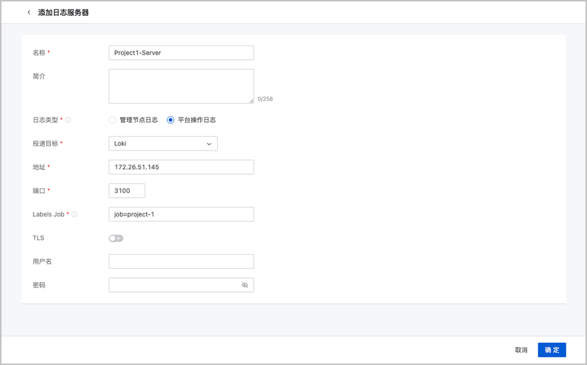某项目用户需要使用日志服务器收集平台操作日志,用于回溯项目成员的操作记录。