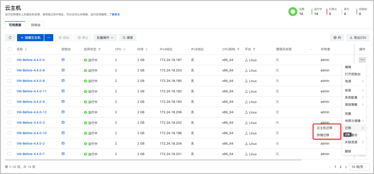 在之前版本中,ZStack Cloud支持两种云主机迁移场景:云主机迁移、存储迁移。执行云主机迁移操作,将仅更改云主机所在物理机,不更改主存储。执行存储迁移操作,将同时更改云主机所在的物理机和主存储。