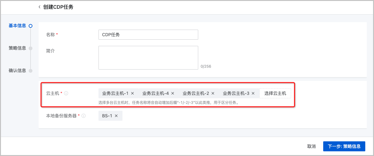 ZStack Cloud 4.4.6开始,支持为多台云主机创建CDP任务,统一提供CDP保护,减少批量场景下的重复操作,提高运维效率。