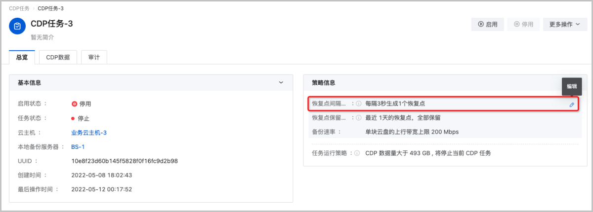 此外,“CDP数据”页面新增CDP状态展示,并针对不同状态使用不同颜色的图标进行标识,方便用户快速识别CDP状态,进行异常情况处理。