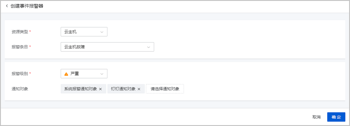 ZStack Cloud 4.2.0新增了用于检测云主机常见故障的默认事件报警器。当云主机出现故障时将及时发出告警,运维人员可以快速响应并处理,保证业务系统始终处于健康状态。同时支持手动创建云主机故障报警器,通过自定义接收端掌握关键业务云主机健康信息,保证业务稳定运行。
