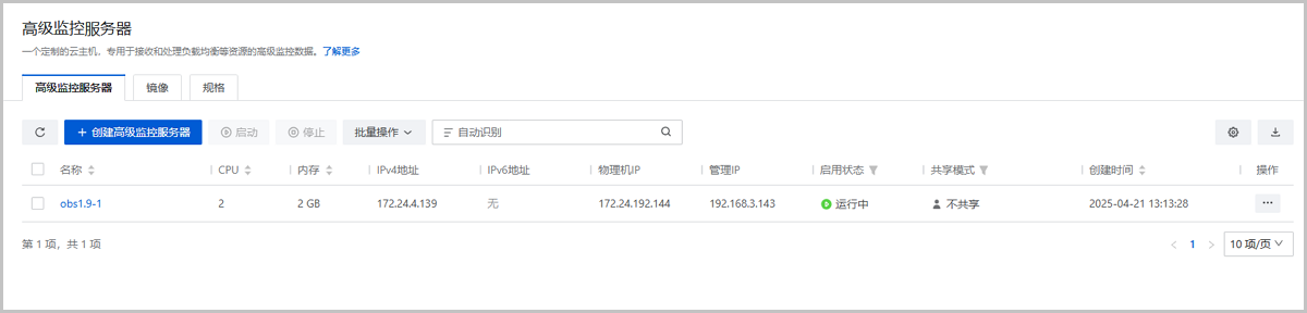 高级监控服务器是一个定制的云主机,专用于接收平台资源的高级监控数据,为平台资源提供更丰富、详细的监控指标。