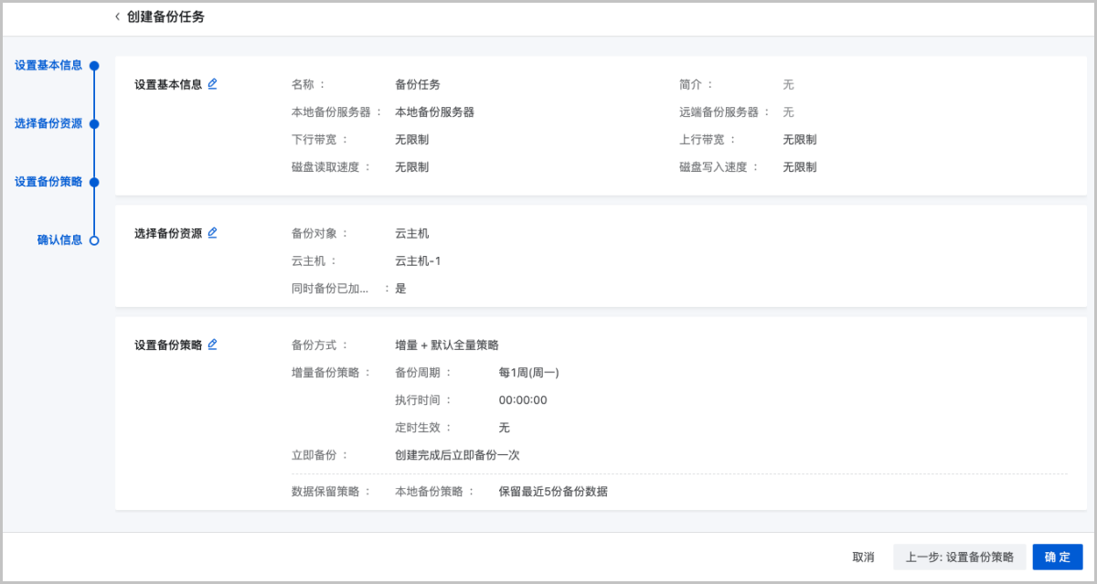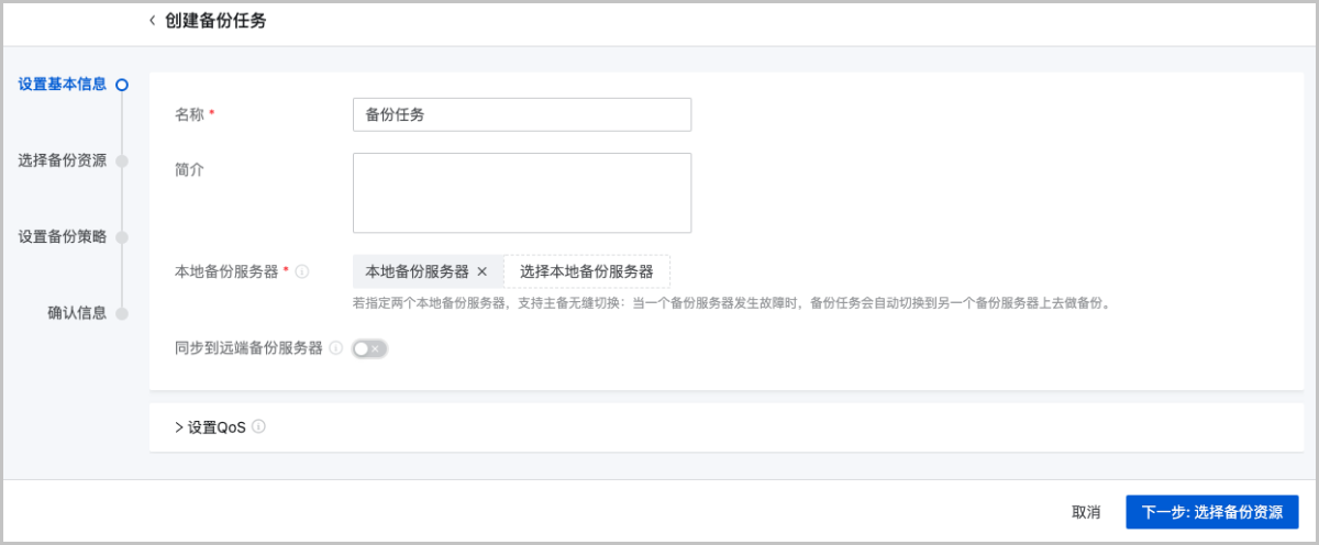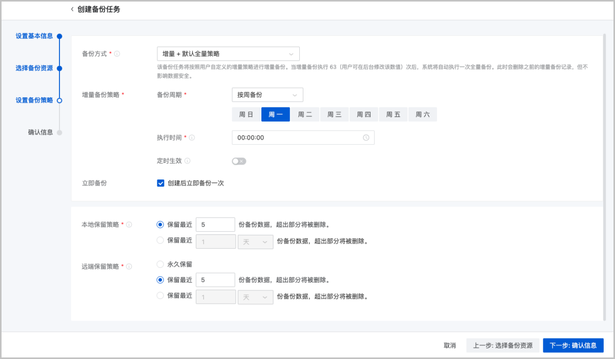 创建备份任务分为以下四步: