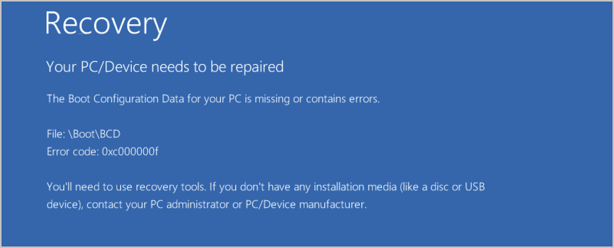 若Windows云主机启动时出现The Boot Configuration Data for your PC is missing or contains errors提示,推测故障原因可能为物理机异常断电,造成云主机引导文件丢失,云主机系统保留分区被标记为非活动分区,导致云主机启动时无法进入系统。