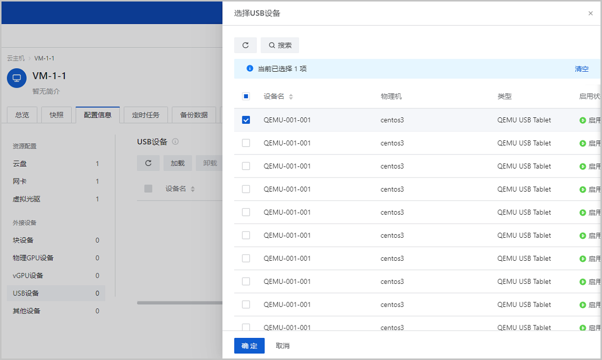 • 启用:启用USB设备,启用后支持加载到云主机。
