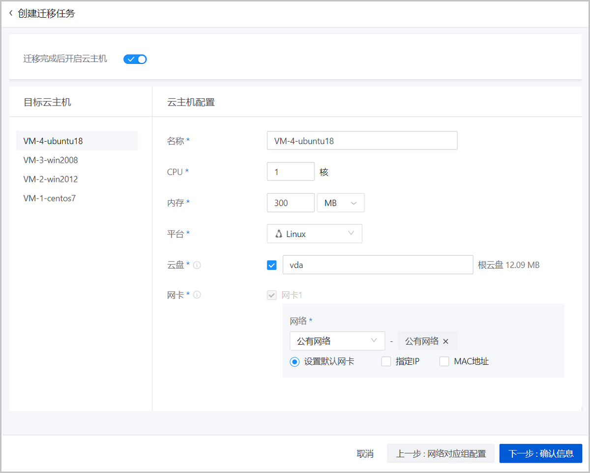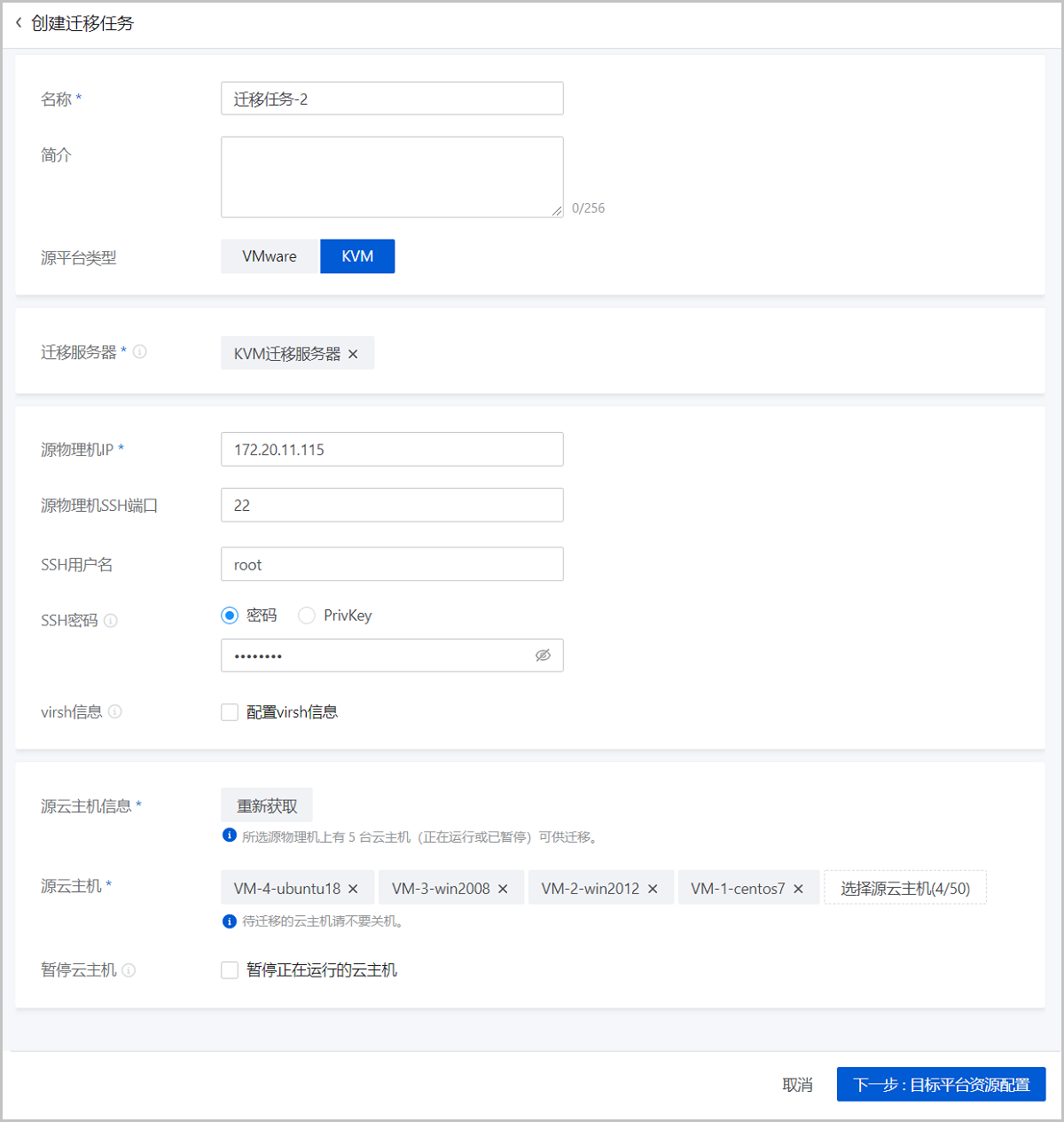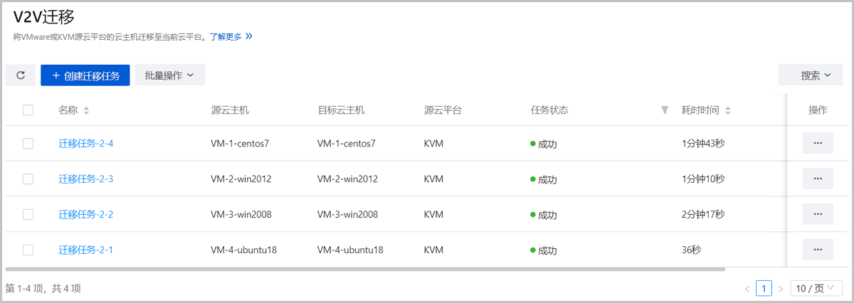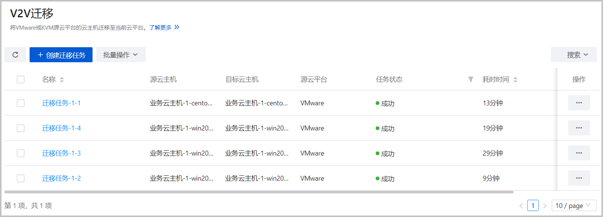 在ZStack Cloud主菜单,点击,进入V2V迁移界面。点击创建迁移任务,弹出创建迁移任务界面。