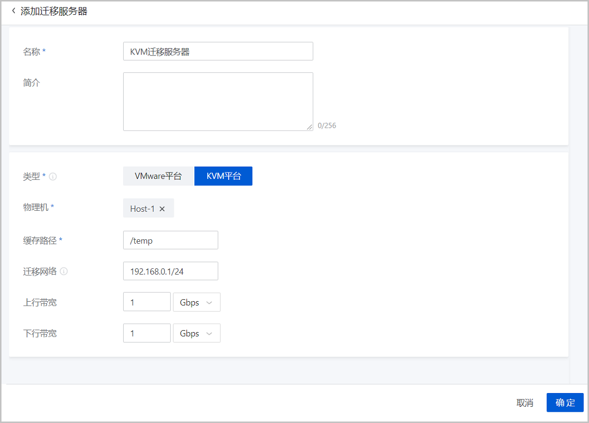 在ZStack Cloud主菜单,点击,进入迁移服务器界面。点击添加迁移服务器,弹出添加迁移服务器界面。