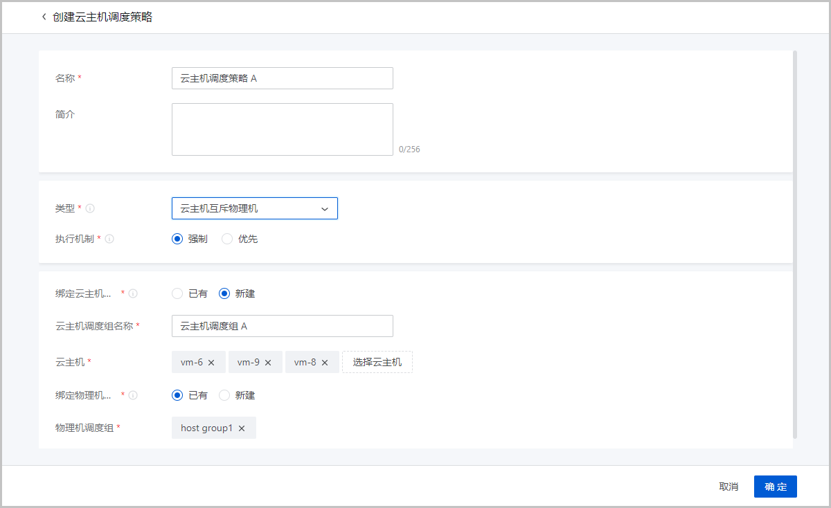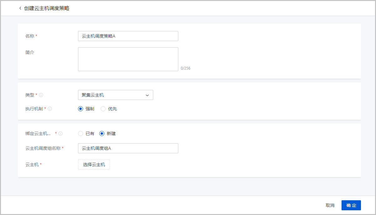 | 修改执行机制 | 修改云主机调度策略的执行机制,支持修改成强制或优先两种机制。 |