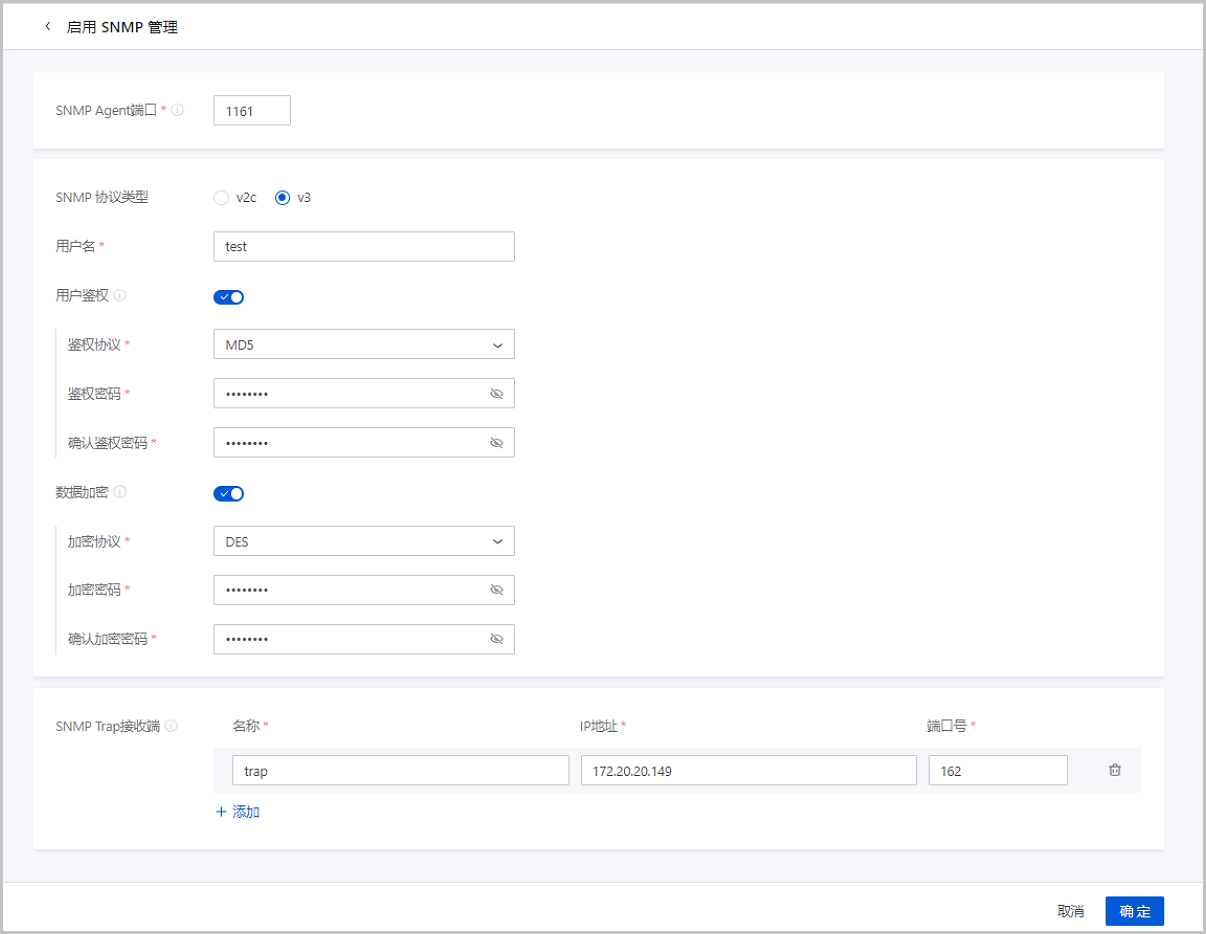 | 启用SNMP管理 | 启用SNMP管理。 |