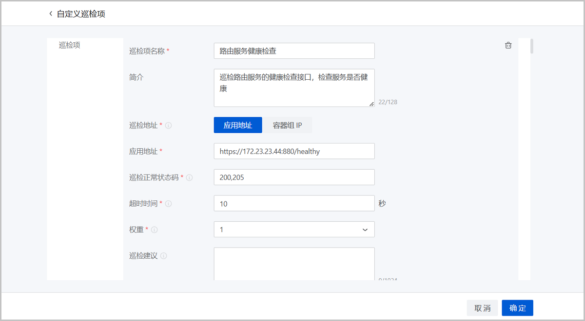 | 取消一键巡检 | 一键巡检进行中时,取消对所选巡检项进行一键巡检。 |