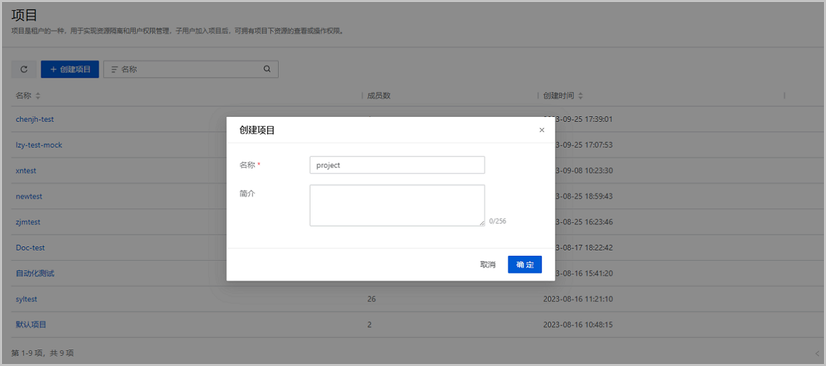 项目是租户的一种,用于实现资源隔离和用户管理,子用户加入项目后,可拥有项目下资源的查看或操作权限。