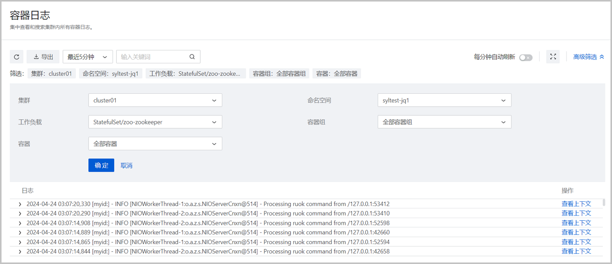 该界面集中展示集群内全部容器日志。