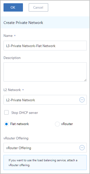 network. - vRouter Offering: Optional. Attach a vRouter offering if your IPv4 flat network must use the load balancing network service.
