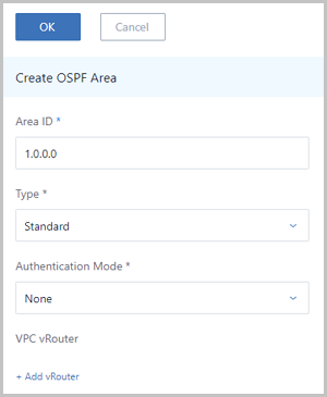 - Network: Select the network under the VPC vRouter, and add the network to the OSPF area.