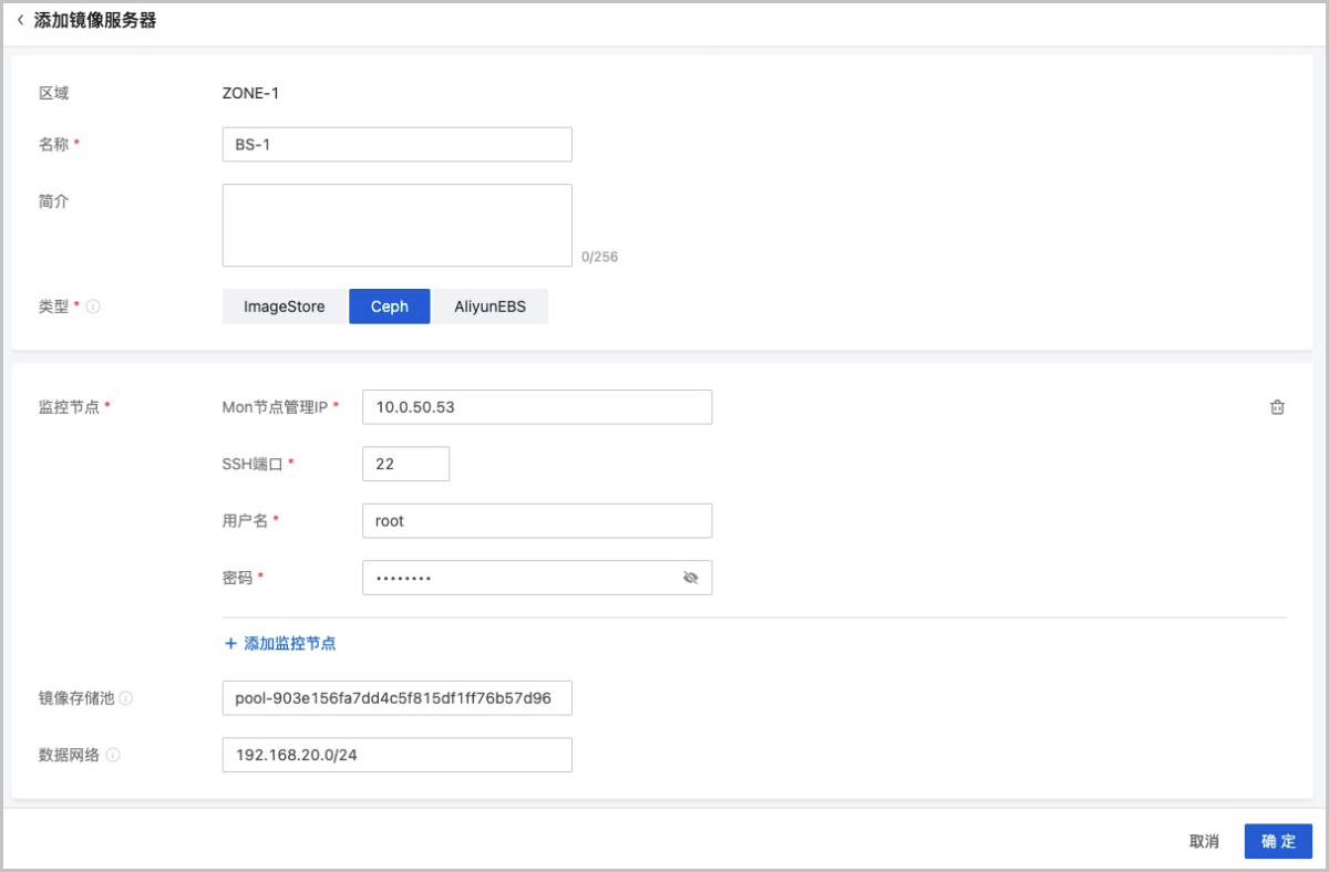 - 支持对Ceph镜像服务器指定特定的存储池,若留空,系统默认自动创建镜像存储池。